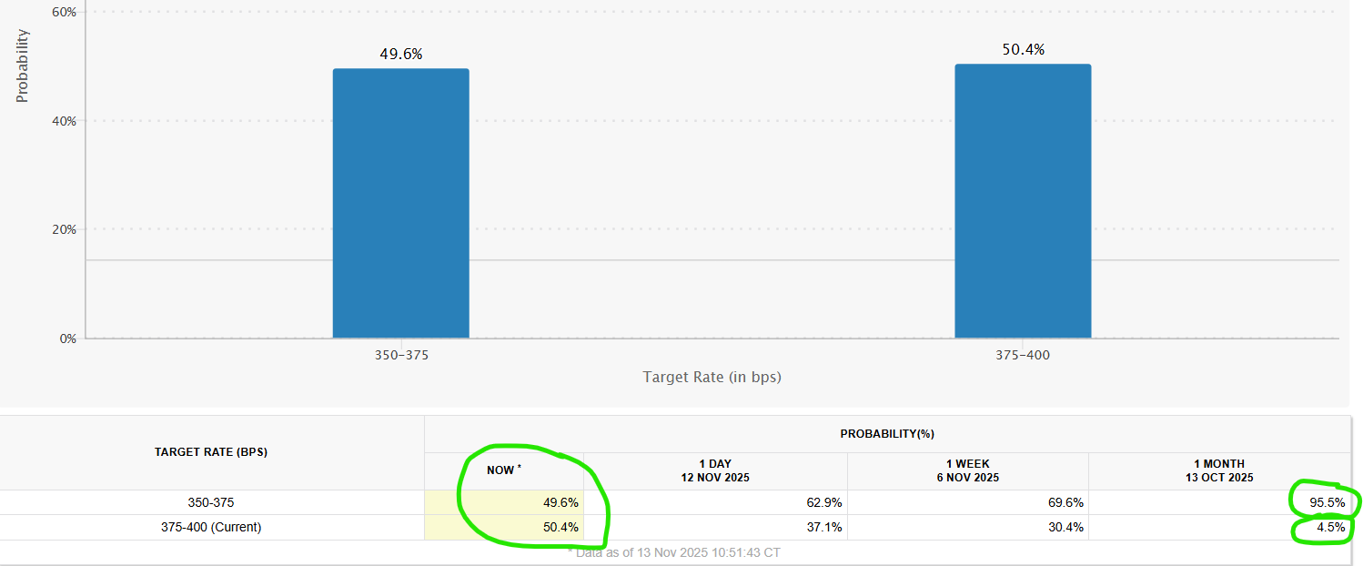 跟着好意思联储官员对通胀捏续高于所在暗示担忧,一个要道的利率预期天公谈出现逆转——商场对好意思联储12月降息的预期概率周四首度跌破50%。就在上个月,投资者还曾一度全皆消化了降息预期——他们其时押注劳能源商场疲软的影响将压倒物价压力。